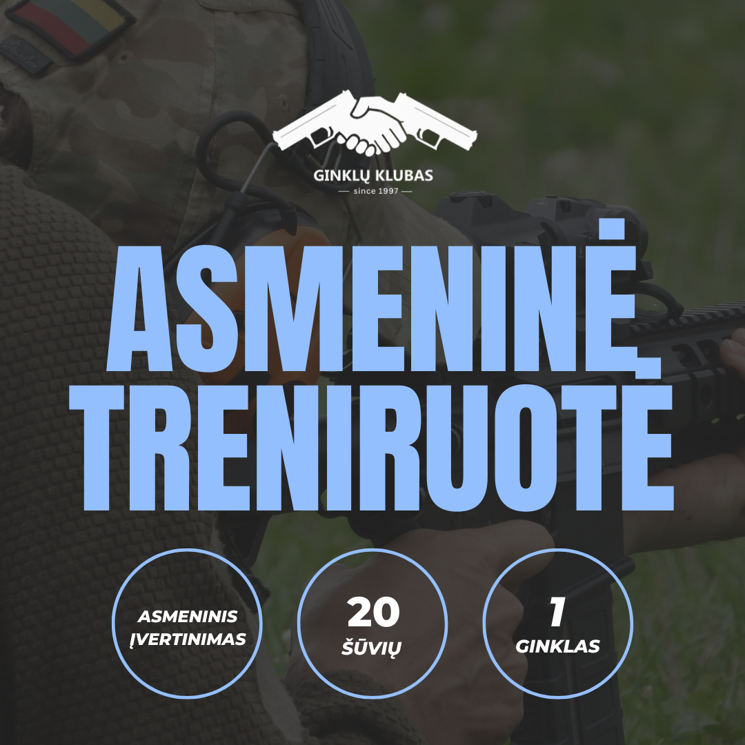Papildoma informacija: perkant tris asmenines treniruotes – ketvirtai taikoma 20 proc. nuolaida, nuolaidos kodas suteikiamas įsigijus 3 treniruotes ir paskambinus +37064069242 arba susisiekus info@gunsclub.lt